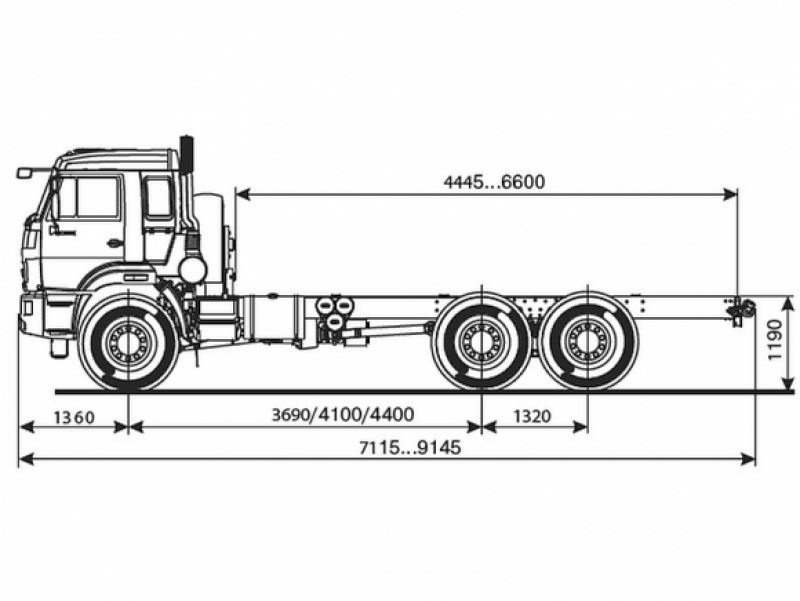 Шасси 6*6 вездеход, длина рамы 6 200 мм, межосевое растояние 4 400 мм, грузоподъемность 12.6 тонн…